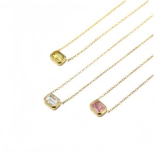 14K Gold Plated Square Zircon Stainless Steel Pendant Necklace Women