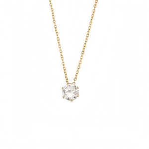 Women’s Dainty CZ Round Pendant Gold Necklace